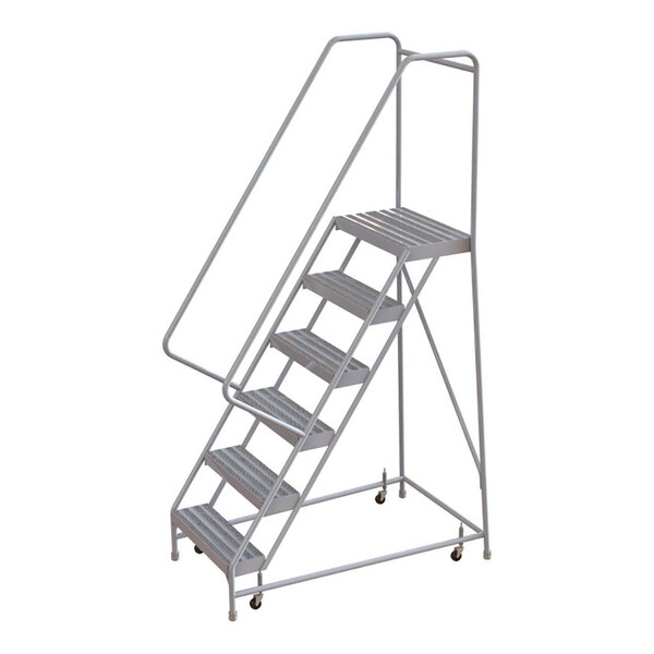 Tri-Arc 6-Step Aluminum Rolling Safety Ladder with Ribbed Tread, 24" Wide Steps, and 14" Deep Top Step WLAR106244 - 350 lb. Capacity