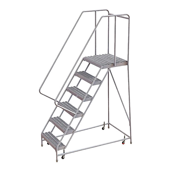 Tri-Arc 6-Step Aluminum Rolling Safety Ladder with Serrated Tread, 16" Wide Steps, and 21" Deep Top Step WLAR106165-D4 - 350 lb. Capacity