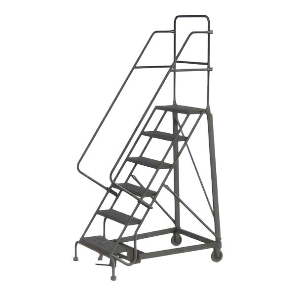 Tri-Arc 6-Step Heavy-Duty Rolling Safety Ladder with Serrated Tread and 24" Step Width KDHD106242 - 600 lb. Capacity