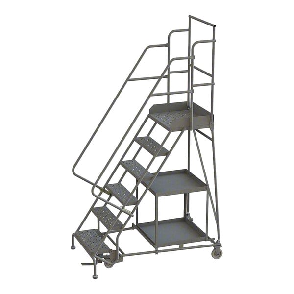 Tri-Arc 6-Step Rolling Safety Ladder / Stock Picking Cart with Serrated Tread and 2 Shelves KDSP106242 - 450 lb. Capacity