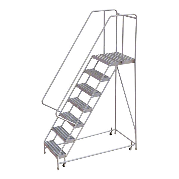 Tri-Arc 7-Step Aluminum Rolling Safety Ladder with Ribbed Tread, 16" Wide Steps, and 21" Deep Top Step WLAR107164-D4 - 350 lb. Capacity