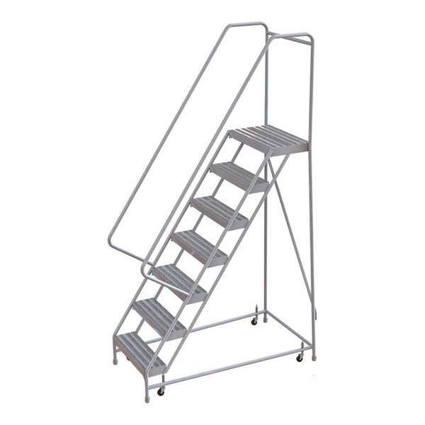 Tri-Arc 7-Step Aluminum Rolling Safety Ladder with Ribbed Tread, 24" Wide Steps, and 14" Deep Top Step WLAR107244 - 350 lb. Capacity