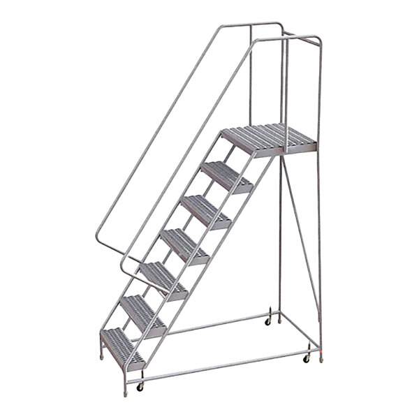 Tri-Arc 7-Step Aluminum Rolling Safety Ladder with Serrated Tread, 16" Wide Steps, and 21" Deep Top Step WLAR107165-D4 - 350 lb. Capacity
