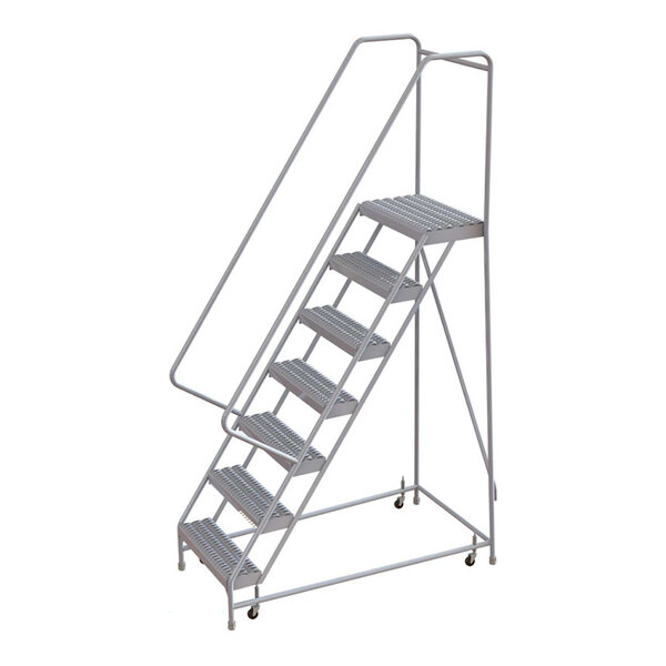 Tri-Arc 7-Step Aluminum Rolling Safety Ladder with Serrated Tread, 24" Wide Steps, and 14" Deep Top Step WLAR107245 - 350 lb. Capacity
