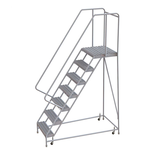 Tri-Arc 7-Step Aluminum Rolling Safety Ladder with Serrated Tread, 24" Wide Steps, and 21" Deep Top Step WLAR107245-D4 - 350 lb. Capacity