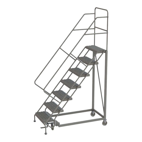 Tri-Arc 7-Step Easy Climb 50-Degree Slope Rolling Safety Ladder with Perforated Tread and 16" Step Width KDEC107166 - 450 lb. Capacity