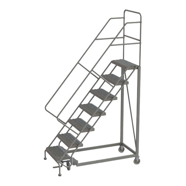 Tri-Arc 7-Step Easy Climb 50-Degree Slope Rolling Safety Ladder with Perforated Tread and 24" Step Width KDEC107246 - 450 lb. Capacity