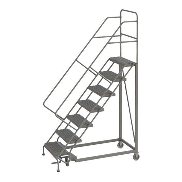 Tri-Arc 7-Step Easy Climb 50-Degree Slope Rolling Safety Ladder with Serrated Tread and 24" Step Width KDEC107242 - 450 lb. Capacity
