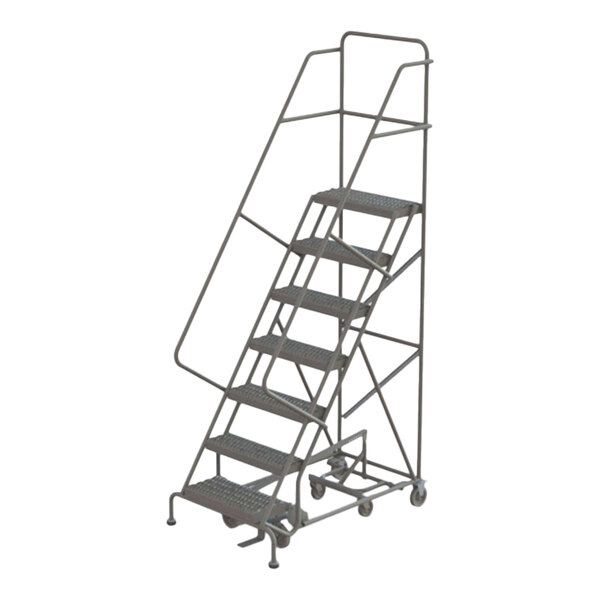 Tri-Arc 7-Step Heavy-Duty Rolling Safety Ladder with Serrated Tread and 24" Step Width KDHD107242 - 600 lb. Capacity