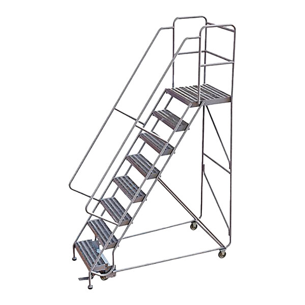 Tri-Arc 8-Step Aluminum Rolling Safety Ladder with Ribbed Tread, 24" Wide Steps, and 21" Deep Top Step WLAR108244-D4 - 450 lb. Capacity