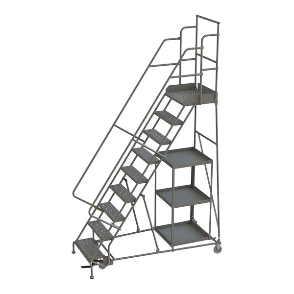 Tri-Arc 9-Step Rolling Safety Ladder / Stock Picking Cart with Perforated Tread and 3 Shelves KDSP109246 - 450 lb. Capacity