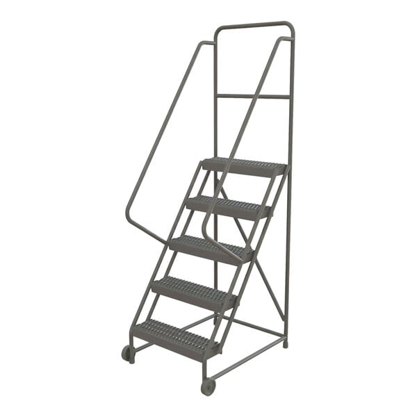 Tri-Arc Tilt & Roll 5-Step Rolling Safety Ladder with Serrated Tread and 24" Wide Steps KDTF105242 - 450 lb. Capacity