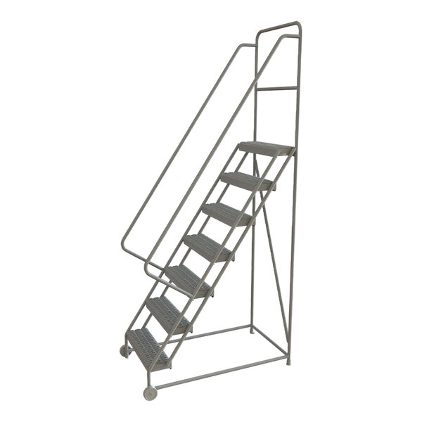Tri-Arc Tilt & Roll 7-Step Rolling Safety Ladder with Serrated Tread and 24" Wide Steps KDTF107242 - 450 lb. Capacity