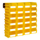 - System is made of (2) wall-mount rails and (24) bins