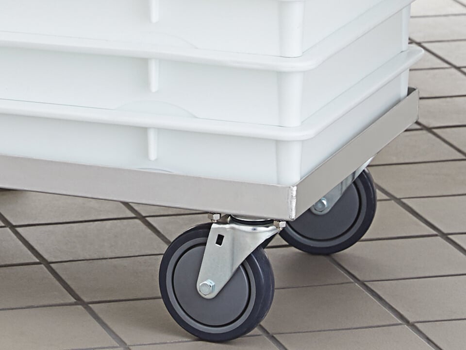 The 5" casters allow for a wide range of motion and make turning and reversing simple. There's no need to worry about these casters leaving marks on plant or retail floors either, because they feature a non-marking design for smooth transportation.