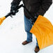 Outfit your establishment with this True Temper snow shovel / pusher to prepare for snow and ice removal. This product's blade design combines elements of a snow shovel and a snow pusher for all-purpose snow removal made easy. Its unique blade shape makes quick work of stubborn snow and ice, while the high-density poly blade construction is durable yet light weight and built to withstand cold temperatures! The blade also features an angled rib pattern to prevent snow buildup, reducing effort and fatigue during snow removal.