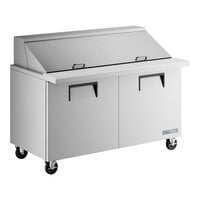 This unit is outfitted with a pan rail that comes with (12) 1/6 size, 4" deep food pans, so you can begin using it as soon as possible. For more widely used ingredients, though, it can hold pans up to 6" deep. This refrigerated prep table also features a full-length, 11 3/4" deep cutting board made from durable white polyethylene that's built to stand up to constant pounding and cutting from kitchen knives.