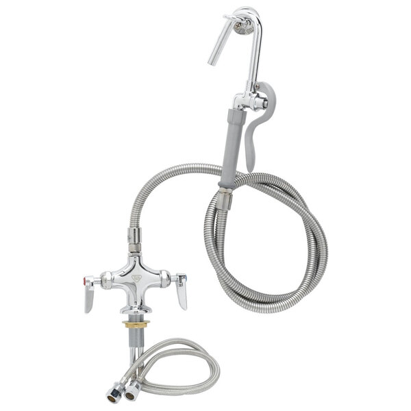 T&S B-0602 Deck Mounted Pot / Kettle Filler Faucet with Flex Inlets, Hook Nozzle Spray Valve, 60" Hose, 12" Add-On Faucet, Supply Hoses, Supply Stops, Vacuum Breaker, and Wall Hook