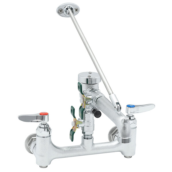 T&S B-0665-BSTR-963 Wall Mount Rough Chrome Service Sink Faucet with 8" Adjustable Centers, Upper Wall Support, Built In Stops, Eterna Cartridges, Quarter Turn Ball Valves, and Continuous Pressure Vacuum Breaker