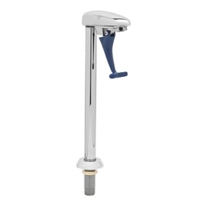 Having a strategically placed water fill station is a great way to increase efficiency in your business, and thanks to its dark blue pushback lever, this glass filler immediately lets employees know that this is where they should go to fill customers' water glasses. The filler features a 12" pedestal that offers plenty of space between the flow outlet and your countertop to quickly fill large tumblers, glasses, and pitchers!