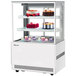 Show off your delicate baked goods or fluffy cakes with this Turbo Air TBP36-54NN-W 35 1/2" square glass three tier white refrigerated bakery display case! With its sleek, attractive euro design, this bakery display case is the perfect addition to your upscale bakery, cafe, candy shop, or restaurant. It features straight tempered glass sides on all four sides with a minimalist frame design so that your luscious treats can sell themselves from any angle. Plus, the adjustable shelf design features tempered glass with stainless steel front and back edges so that even the shelves will not impede this unit's merchandising potential. In addition, the safety shielded LED interior lighting is bright and cool to show off your products at their best and the rear sliding doors provide easy access even in tight spaces.