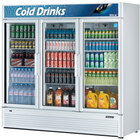 Keep your most popular beverages, foods, and other refrigerated items cold and ready for sale with this Turbo Air TGM-72SDB-N Super Deluxe Series 78" black three section glass door merchandising refrigerator. It features 71.3 cu. ft. of space and 12 shelves, so you can stock up on your most popular refrigerated products while encouraging impulse sales. And thanks to its LED, shadow-free advertising panel this merchandiser allows items to stand out and catch customers' eyes. Interior LED lighting puts all the attention on your product and illuminates it for better visibility. Plus, the double pane glass doors are made with Low-E glass for better efficiency. A digital control system makes monitoring this unit a breeze.