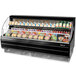 An excellent addition to any grocery store, deli, or self-serve area, the Turbo Air TOM-75LB-N 75" black low profile horizontal air curtain display case keeps contents at safe holding temperatures while letting you increase impulse sales of your most popular foods! This open air horizontal merchandiser boasts 17.7 cu. ft. of space and 2 stainless steel shelves to hold everything from pre-made sandwiches to bottled beverages. Boasting a contemporary design, this display case combines efficiency and durability to create an eye-catching display at your establishment. A safety reinforced tempered glass front shield and side walls provide superior visibility and access to products.