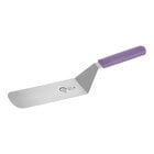 Easily flip made-to-order sandwiches with this Mercer Culinary M18700WH Millennia® 8" x 3" turner with white handle. This turner's high quality, precision-ground, high-carbon Japanese stainless steel blade offers the perfect combination of flexibility and stiffness. The durable material is also resistant to stains so it is always looks like new for your next task! The large, 8" x 3" blade efficiently saves time in busy kitchens by flipping more food at once. Its rounded edges make it ideal for turning not only meats, but omelets, pancakes, or French toast, as well!