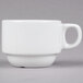 Providing durability and high-quality appearance at an economical price, the Tuxton China Alaska line is a must have addition to any restaurant, hotel, or catering service. The clean lines and bright white shine of this cup will turn all of your culinary creations into eye-catching masterpieces. Designed with daily use in mind, this collection is dishwasher, microwave, and oven safe. This cup is fully vitrified to prevent moisture absorption. This durable piece stands up against breakage, chipping, and scratches commonly caused by the wear and tear of every day use. If your cup does chip, the Alaska line is covered under Tuxton's lifetime edge chip limited warranty! Provide some relief to your budget and modern flair to your table with this Tuxton Alaska bright white stackable cup.