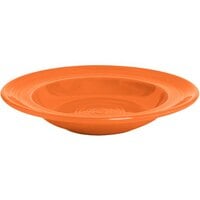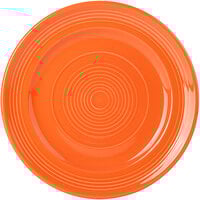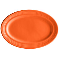 This Tuxton CPH-136 Concentrix 13 3/4" x 10 1/2" papaya oval china platter brings a fresh pop of color to any table setting! Its trendy, sleek look features concentric ridges that, when combined with its refreshingly bright orange coloring, will draw attention to your tasty offerings. This platter is perfect for serving large dinner entrees. In addition its flat design provides more space to present your foods. This platter works great on its own as an eye-catching accent piece, or you can mix and match with other pieces of the Concentrix line for an even more diverse presentation.