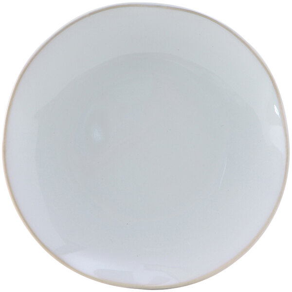This plate may be used in combination with other size and color choices in the TuxTrendz Artisan line to create the perfect place setting at your restaurant, cafe, pub, or lounge. Durable and resistant to wear, this dish offers a creative backdrop to whatever foods you wish to serve. The tan-colored rim paired with the natural edge gives a hand-thrown appearance to enhance the rustic look. Whether needed at a diner, restaurant, or high-end bar, the Artisan line is the perfect, eye-catching choice.