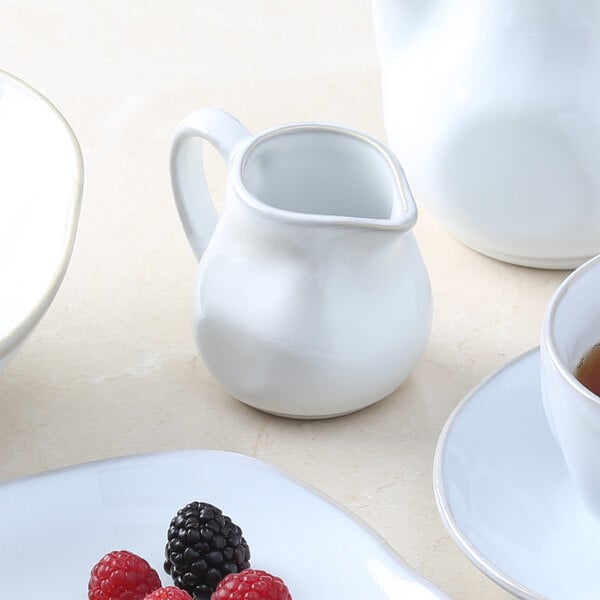 The convenient handle makes this attractive creamer perfect for serving creamer and milk for hot beverages, and even dressing or syrup. Whether your specialty is farm to table fare or Southwestern cuisine, this soft color and pattern will enhance the presentation of your signature menu items.