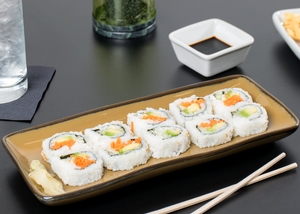 The 11 5/8" x 5 1/8" size of this tray makes it ideal for serving appetizers, samplers, or desserts. Whether your specialty is farm to table fare or Asian cuisine, this vibrant color and pattern will enhance the presentation of your signature menu items.