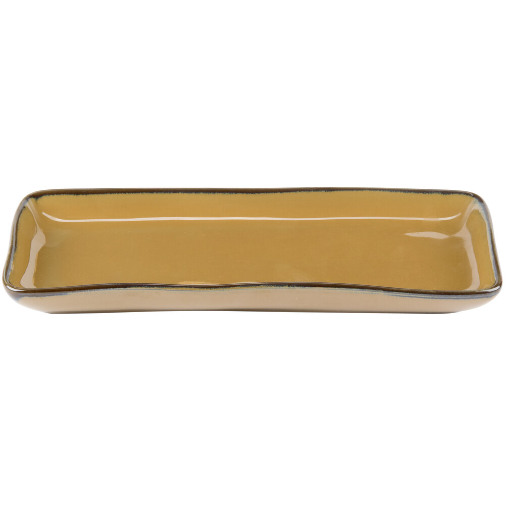 This tray may be used in combination with other size and color choices in the TuxTrendz Artisan line to create the perfect place setting at your restaurant, cafe, pub, or lounge. Durable and resistant to wear, this dish offers a creative backdrop to whatever foods you wish to serve. The rich, sandy palette paired with the natural edge gives a hand-thrown appearance to enhance the rustic look. Whether needed at a diner, restaurant, or high-end bar, the Mojave line is the perfect, eye-catching choice.