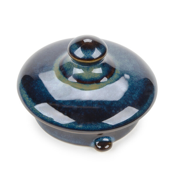 Vibrant color and an original rustic style sum up the Tuxton GAN-101L TuxTrendz Artisan Night Sky 17 oz. china teapot lid. This teapot lid may be used to replace lost or broken lids from other teapots in the TuxTrendz Artisan line. The lid's rich color and glazed finish deliver an authentic look sure to enhance your presentation.