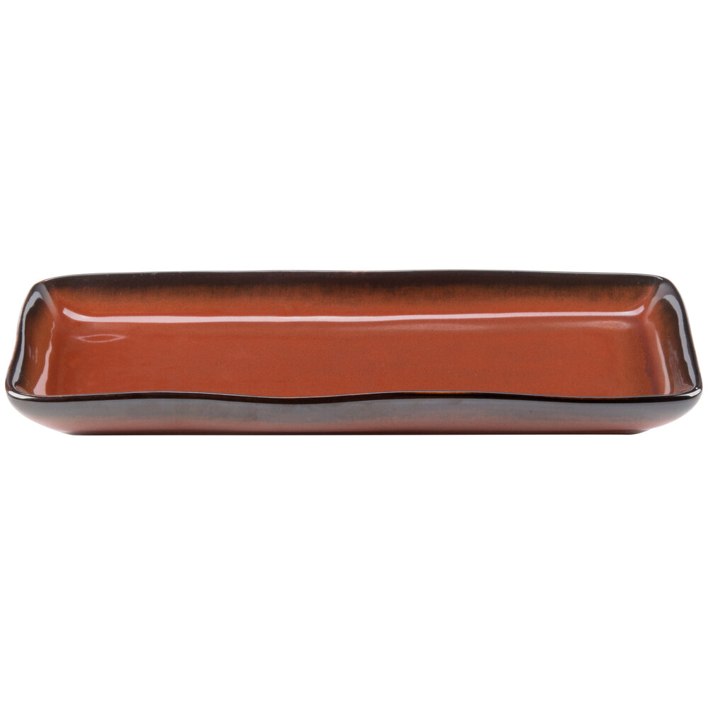 This tray may be used in combination with other size and color choices in the TuxTrendz Artisan line to create the perfect place setting at your restaurant, cafe, pub, or lounge. Durable and resistant to wear, this dish offers a creative backdrop to whatever foods you wish to serve. The rich, russet palette paired with the natural edge gives a hand-thrown appearance to enhance the rustic look. Whether needed at a diner, restaurant, or high-end bar, the Red Rock line is the perfect, eye-catching choice.
