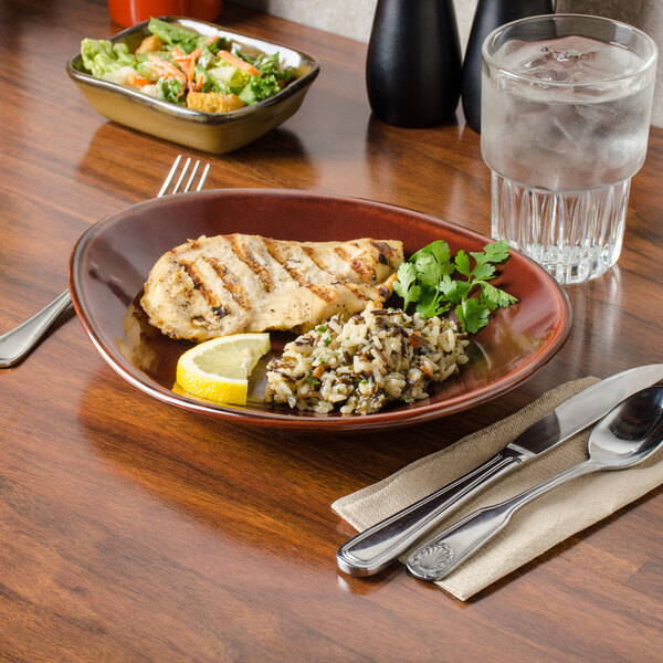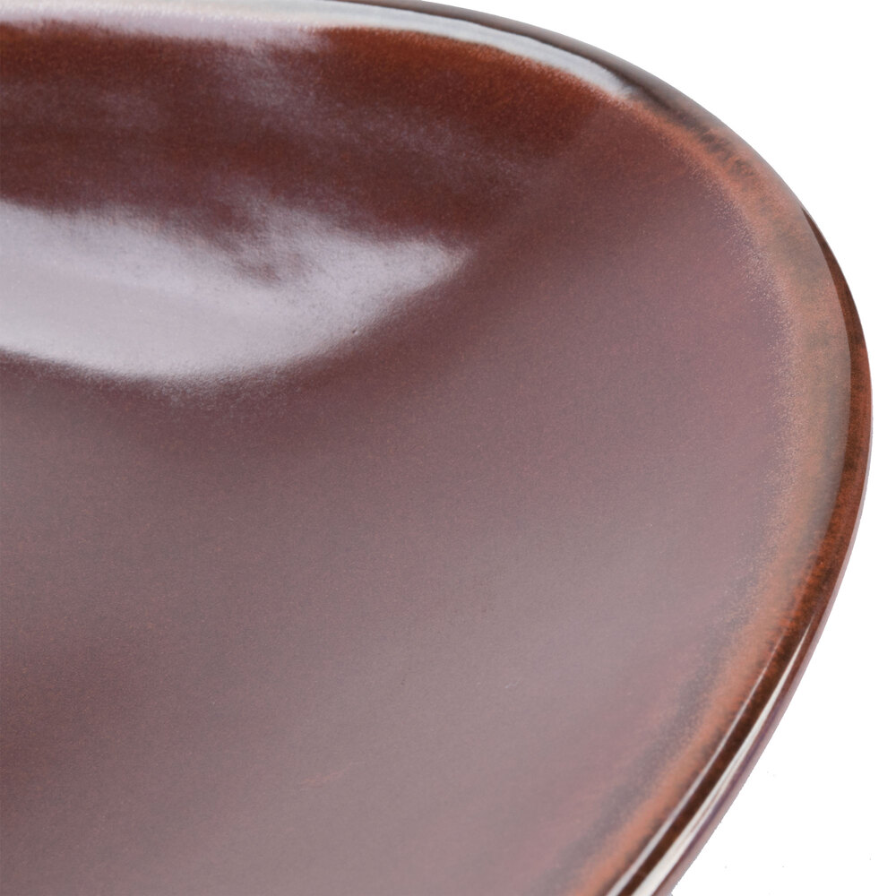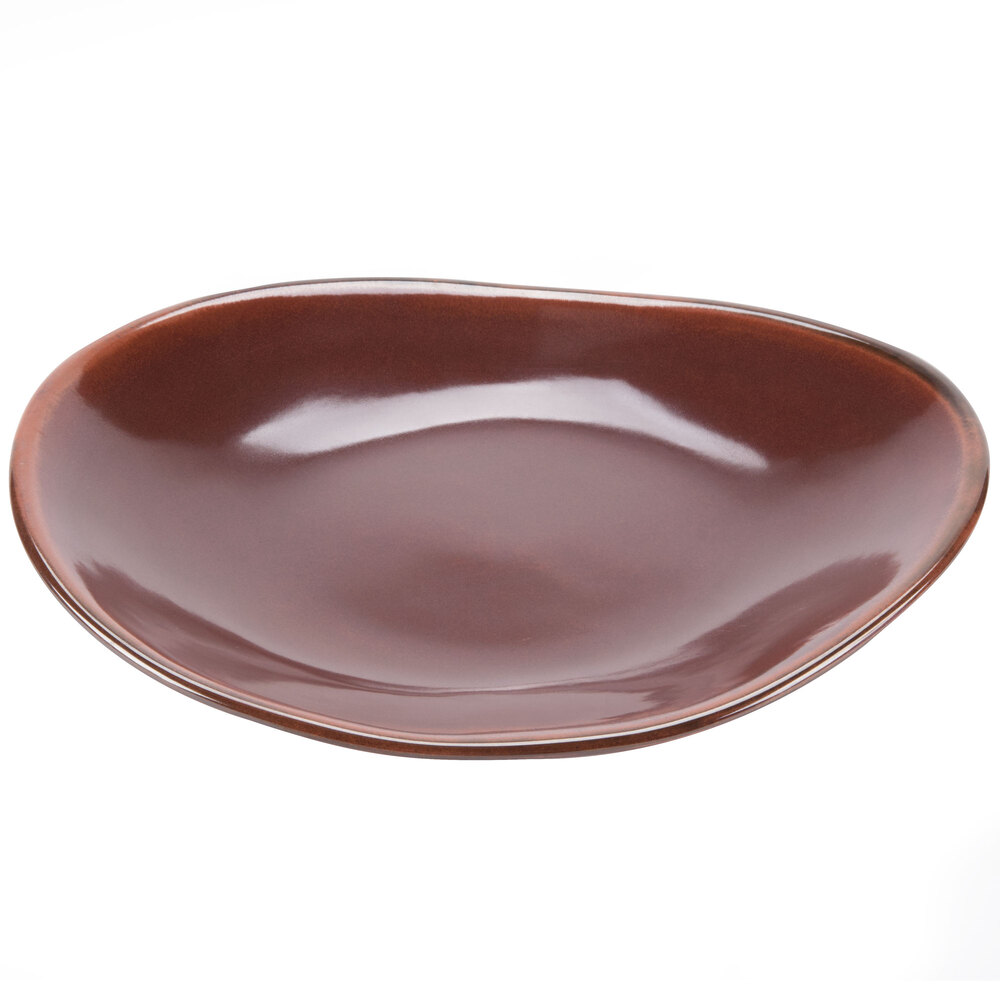 This ellipse plate may be used in combination with other size and color choices in the TuxTrendz Artisan line to create the perfect place setting at your restaurant, cafe, pub, or lounge. Durable and resistant to wear, this dish offers a creative backdrop to whatever foods you wish to serve. The rich, russet palette paired with the natural edge gives a hand-thrown appearance to enhance the rustic look. Whether needed at a diner, restaurant, or high-end bar, the Red Rock line is the perfect, eye-catching choice.