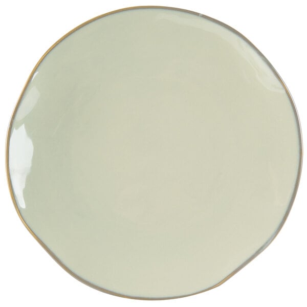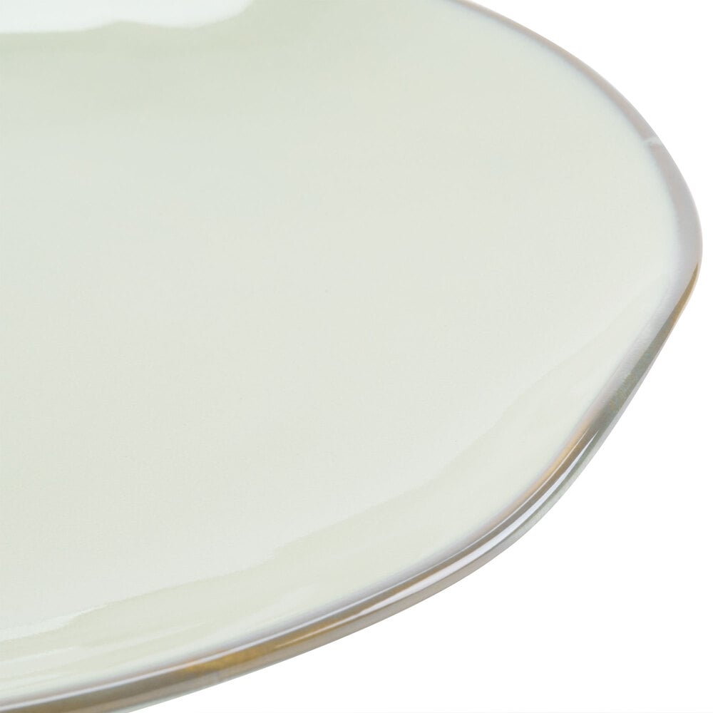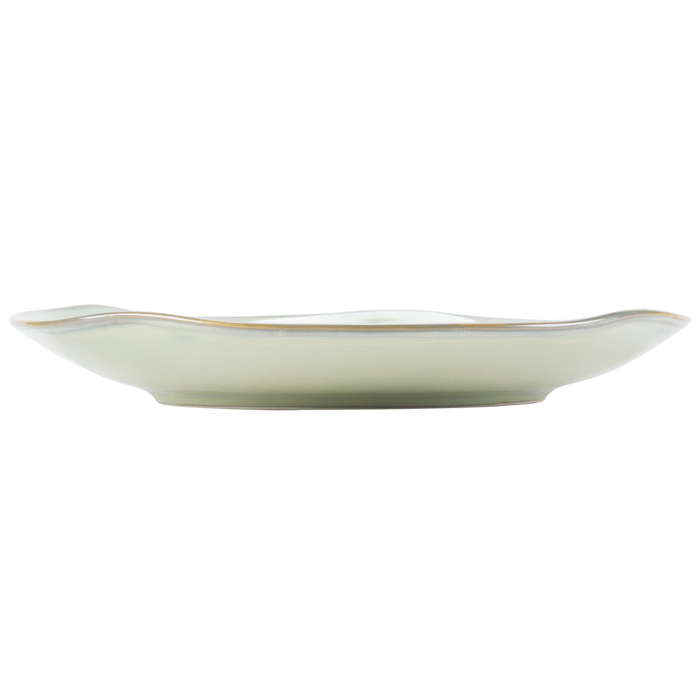 Featuring a rustic-casual style that's perfect for use in your cafe, restaurant, or lodge, this plate's natural color is sure to complement any decor. You can even combine with other colors and sizes (sold separately) to create an exciting, layered tabletop presentation. The soft, sage palette paired with the natural edge gives a hand-thrown appearance to enhance the rustic look.