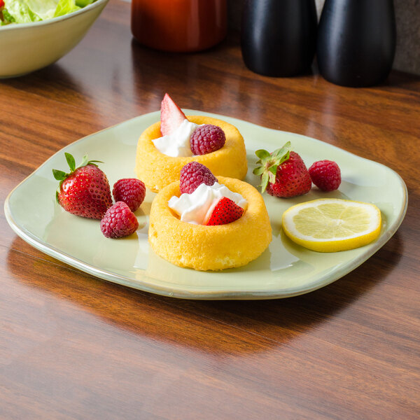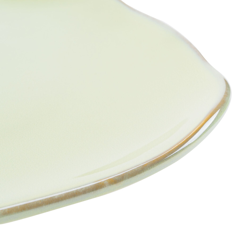 Featuring a rustic-casual style that's perfect for use in your cafe, restaurant, or lodge, this plate's natural color is sure to complement any decor. You can even combine with other colors and sizes (sold separately) to create an exciting, layered tabletop presentation. The soft, sage palette paired with the natural edge gives a hand-thrown appearance to enhance the rustic look.