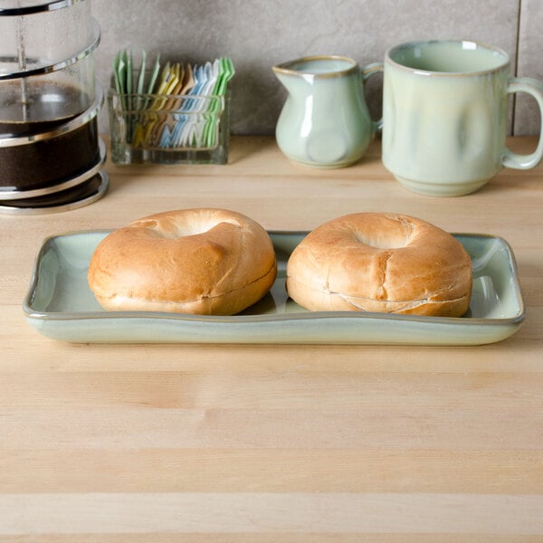Featuring a rustic-casual style that's perfect for use in your cafe, restaurant, or lodge, this tray's natural color is sure to complement any decor. You can even combine with other colors and sizes (sold separately) to create an exciting, layered tabletop presentation. The soft, sage palette paired with the natural edge gives a hand-thrown appearance to enhance the rustic look.