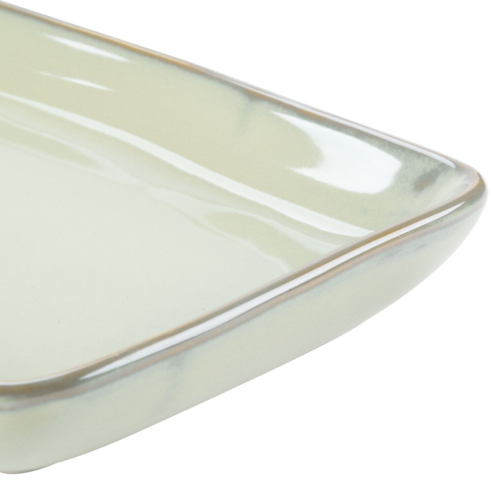 Featuring a rustic-casual style that's perfect for use in your cafe, restaurant, or lodge, this tray's natural color is sure to complement any decor. You can even combine with other colors and sizes (sold separately) to create an exciting, layered tabletop presentation. The soft, sage palette paired with the natural edge gives a hand-thrown appearance to enhance the rustic look.