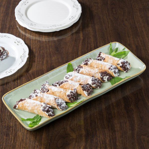 Tuxton GAS-551 TuxTrendz Artisan Sagebrush 5" x 13 3/4" China Tray - 12/Case