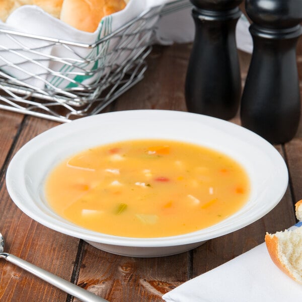 Use this 14 oz. soup bowl to serve hearty soups or stews, and you can even use it to present large salads! Plus, the wide rim has the effect of making food portions appear larger as it stylishly frames the foods in the center of the dish.