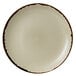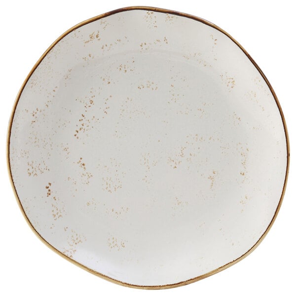 The plate's speckled geode agave color paired with the natural edge provides a hand-thrown appearance. Whether your specialty is farm to table fare or Southwestern cuisine, this soft color and pattern will enhance the presentation of your signature menu items.