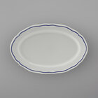 Tuxton SBH-090 TuxTrendz Charleston White 9" x 6" Scalloped Edge China Oval Platter with Blue Band - 24/Case