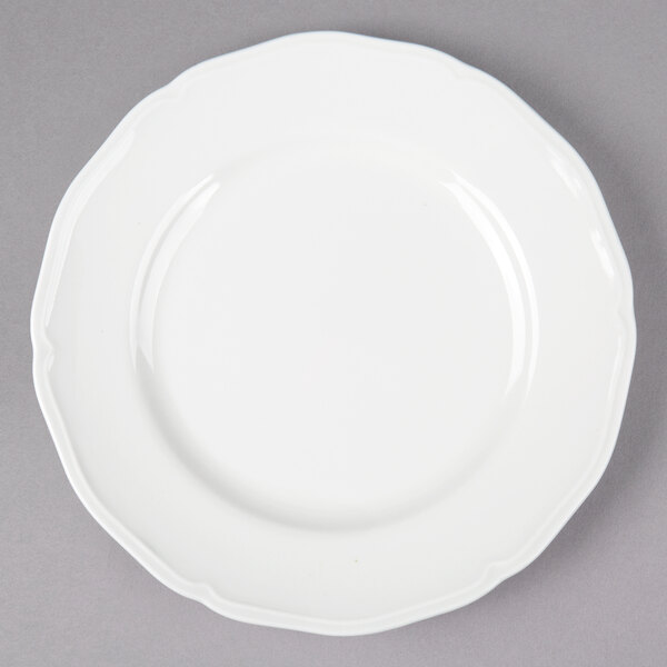 Tuxton SCA-074 TuxTrendz Charleston Bright White 7 1/2" Scalloped Edge China Plate - 36/Case
