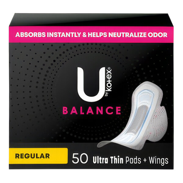 Provide reliable and comfortable feminine hygiene products for your guests or patrons with U by Kotex Balance ultra thin pads with wings. These regular absorbency pads feature CushionCore technology, which fits closely to the body and absorbs moisture instantly, delivering up to 100% leak-free protection. Offering up to 10 hours of protection, these pads ensure users stay confident throughout the day. This case includes 3 boxes, each with 50 pads, for a total of 150 regular absorbency pads, providing a convenient supply for your facility's needs.