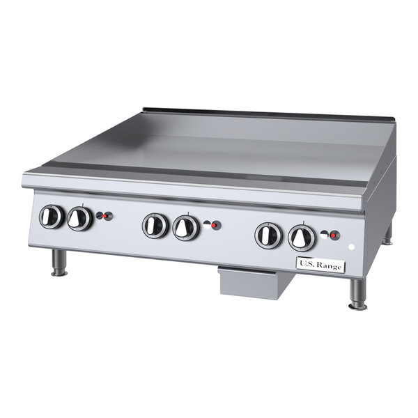 U.S Range UTGG36-GT36M 36" Liquid Propane Chrome Plated Countertop Griddle with Thermostatic Controls - 84,000 BTU
