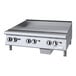 This 36" wide heavy-duty gas griddle features 3 "U" shaped, 28,000 BTU burners for powerful, even cooking. Its thermostatic controls enable precise temperature adjustment from 200 to 550 degrees Fahrenheit, while the Piezo ignition ensures reliable lighting at the beginning of each shift.