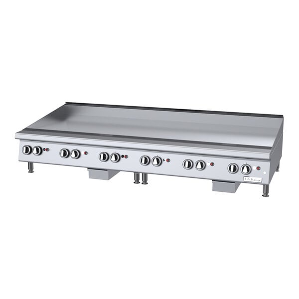 U.S. Range UTGG72-GT72M 72" Natural Gas Chrome Plated Countertop Griddle with Thermostatic Controls - 168,000 BTU